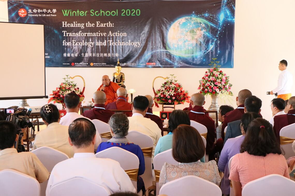 ၂၀၂၀ခုနှစ် ဇန်နဝါရီလ ၈ရက်နေ့တွင် မြန်မာနိုင်ငံ ရန်ကုန်မြို့၌ ဘဝငြိမ်းချမ်းရေး တက္ကသိုလ်၏ စမ်းသပ်ပညာရေး ဆောင်းရာသီသင်တန်း အပတ်စဉ်-၂အား စတင်ကျင်းပခဲ့ရာ ကမ္ဘာတစ်ဝန်းမှ ကျော်ကြားသော ပညာရှင်များသည် ကမ္ဘာမြေကြီးအား ချစ်မြတ်နိုးသည့်စိတ်ဖြင့် မိမိ၏သုတေသနလေ့လာချက်နှင့် အတွေ့ကြုံများအား သင်တန်းသို့ လာရောက်မျှဝေပေးခဲ့ကြသည်။ သင်တန်းဖွင့်ပွဲသို့ အနယ်နယ်အရပ်ရပ်မှ ဧည့်သည်တော်များ ကြွရောက်ခဲ့ကြသည်။ သင်တန်းဖွင့်ပွဲအခမ်းအနားသို့ သီတဂူဆရာတော် ဒေါက်တာ အရှင်ဉာဏိဿရနှင့်တကွ နိုင်ငံတော်ပရိယတ္တိသာသနာ့တက္ကသိုလ်(ရန်ကုန်)၏ ပါမောက္ခချုပ်ဆရာတော် ဒေါက်တာဘဒ္ဒန္တကုမာရ၊ ရန်ကုန်တိုင်း သာသနာရေးဦးစီးဌာန တိုင်းသာသနာရေးမှူး ဦးစိန်မော်နှင့် ထိုင်ပေမြန်မာကုန်သွယ်ရေးရုံး ကိုယ်စားလှယ် ဒေါက်တာမျိုးသက်တို့သည်လည်း ကြွရောက်ချီးမြှင့်ခဲ့ကြသည်။ သီတဂူဆရာတော်ကြီးသည် သင်တန်းဖွင့်ပွဲအား ကြွရောက်ခဲ့သည့်အပြင် လားရှိုးမြို့နယ် နောင်မွန်ကျေးရွာရှိ မဟာကုသလရာမကျောင်းအတွင်း၌ တည်ထားကိုးကွယ်ရန် စေတီတစ်စူကိုလည်း လင်ဂျူးတောင်ဗုဒ္ဓသာသနာပြုအဖွဲ့ထံသို့ လှူဒါန်းပေးအပ်ခဲ့သည်။