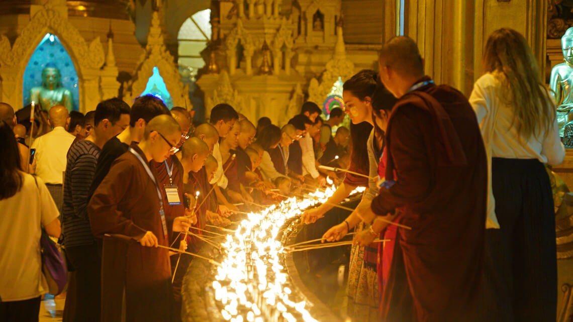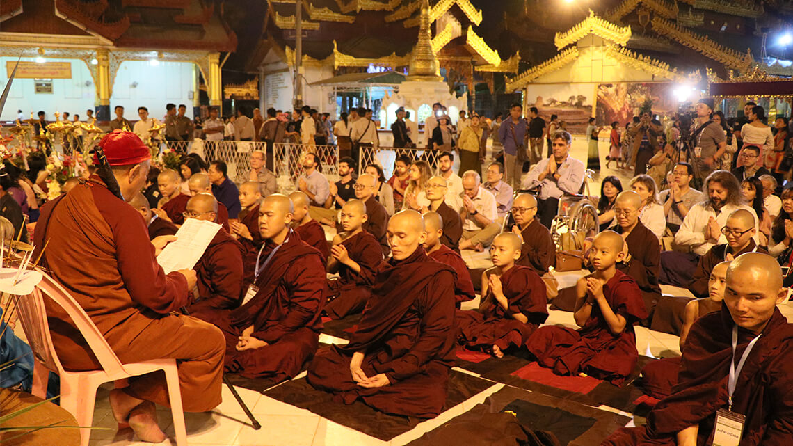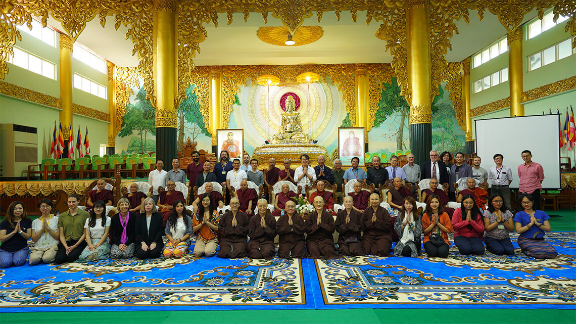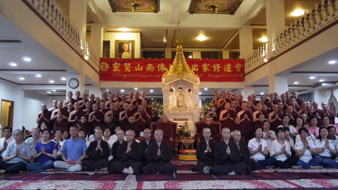 In addition to his deep commitment to charity and education in Myanmar, Venerable Master Hsin Tao also initiated the offering of a short-term ascetic retreat as quasi monastics of Theravada for Buddhist layman at the International Meditation Center of the LJM Maha Kusala Yama Monastery in Yangon. The program has become a popular and regular attraction for 7 years running, with an ever-growing following. The 7th short-term monkhood retreat in the Theravada tradition took place between November 17 and 25, 2019, and the ceremony in which the participants formally vowed to observe and practice the dictated precepts was witnessed and blessed by both Venerable Bhaddanta Dr. Kumara, the Rector of the State Pariyatti Sasana University, and Dharma Master Hsin Tao. The blissful certification ceremony was solemn as well as august.