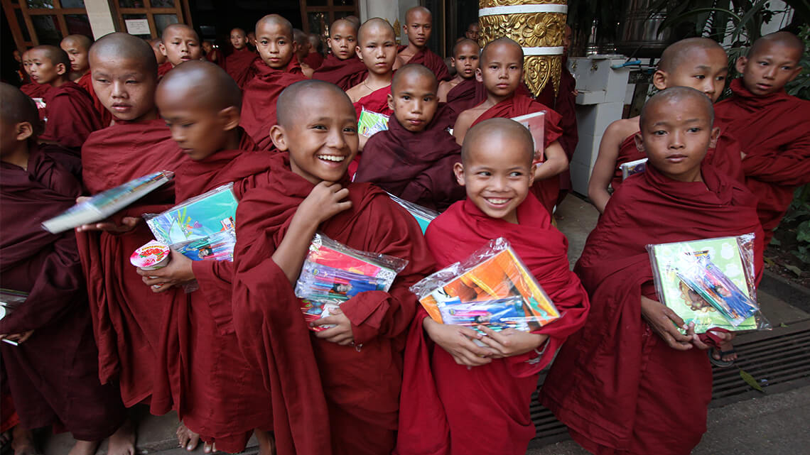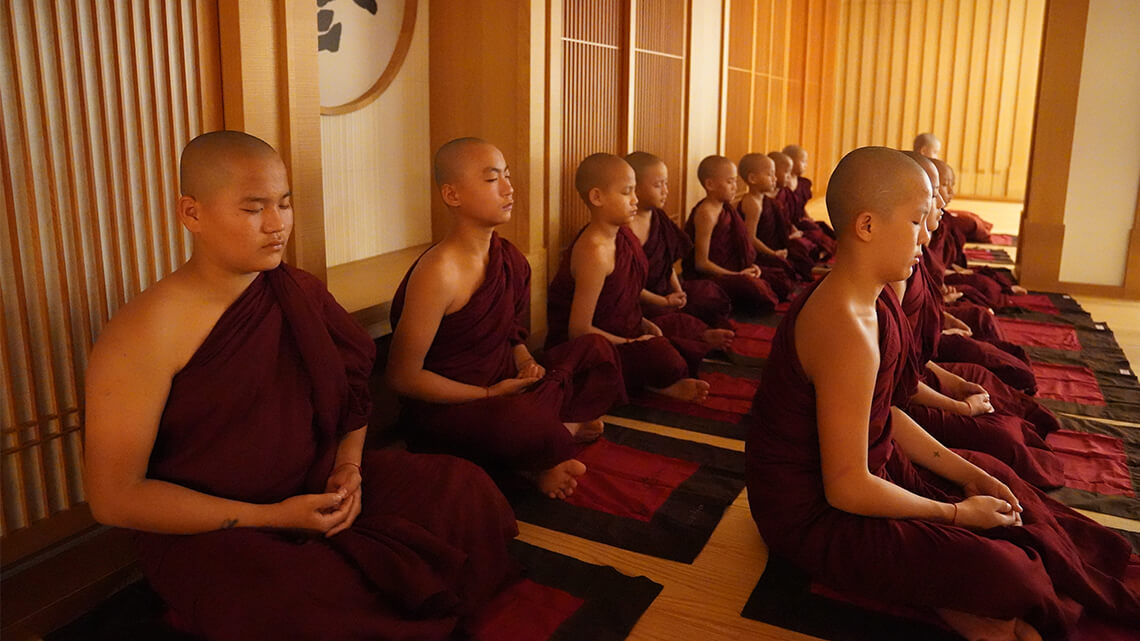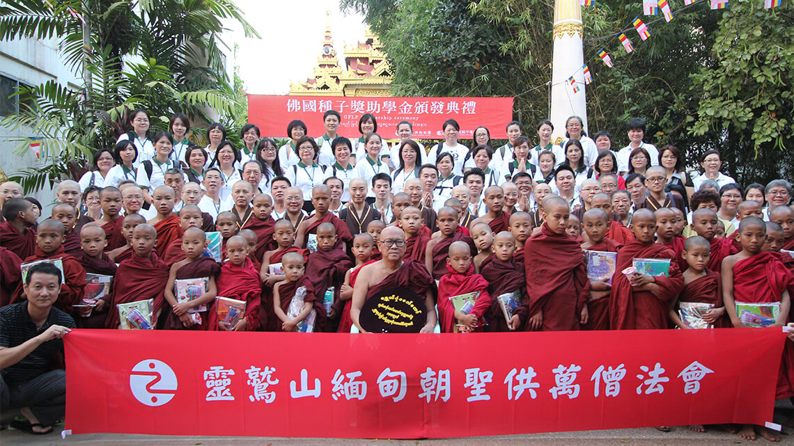 One of the many meaningful projects Dharma Master Hsin Tao is conducting in Myanmar, the land of his birth, the School of Sramaneras at Naung Mon started operations in 2016, primarily to help offer access to education to underprivileged children in the northern regions of the country. The curriculum observes regulations stipulated by local authorities and strikes a balance between knowledge acquisition and skills learning, with the addition of courses in Buddhism in the overall syllabus for the pupils to become seeds for the future spread of love and peace. The design of the syllabus centers around Buddhism (sutra reciting in the mornings and evenings, learning the Pali language, and the studies of Dharma) in Burmese, Chinese, and English, along with the basics of language, mathematics, nature, history, and geography. Group activities such as physical education, music, calligraphy, and gardening are offered to provide a solid and balanced curriculum. Bhikkhus are their life coaches 24/7, acting as role models to help keep everything on track. The School follows the philosophy of individualized education in which cookie-cutter approaches have no place, while activity is always encouraged to energize the classes and optimize their effects. It is hoped that the ambiance and learning thus offered will prove conducive to the grooming of future Buddhist masters who are solid in their practice and respected for their mindfulness and expertise, and above all, recognized for their international foresight.