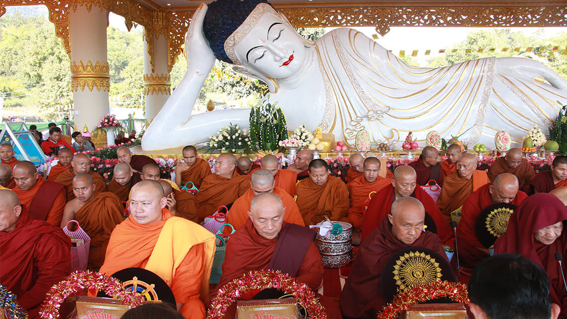Venerable Master Hsin Tao led LJM followers to present the initial Dharma event of ‘Making Offerings to Provide for Ten Thousand Sanghas’ in Myanmar in 2002 to coincide with the ground-breaking ceremony for LJM's Meditation Center there. The Dharma event has since become an annual event that attracts large numbers of pilgrims from China, Taiwan, Hong Kong, Singapore, Indonesia, Malaysia, Europe, and America. Provisions for the four basic needs of the tens of thousands of Sanghas, robes, food, medicine, and bedding, are thus one of the major tasks for LJM every year, and Buddhist followers view the task as their opportunity to earn merits of virtue. From December 2nd to 9th, 2019, 18th Ten Thousand Monks Ceremony, held by LJM, attracted believers from China, Taiwan, Hong Kong, Singapore, Indonesia, Malaysia and numerous other places to come together in the Buddhist country of Myanmar. December 2 - 9, 2019 marked the 18th LJM Dharma Event of a “Grand Puja for Myriad Sanghas in Myanmar”. In his high age of 89, Ven.Bhamo Sayadaw Bhaddanta Kumara Bhivamsa made a special appearance on the occasion in his capacity as the ranking patriarch of the State Sangha Maha Nayaka Committee,Myanmar. On behalf of the LJM Buddhist Society, Master Jing Nian and Mr. JIANG Shih-Min made a donation for medical/medicinal purposes as a contribution to the named Central Standing Committee of Sanghas.