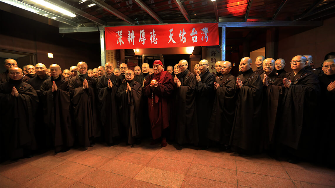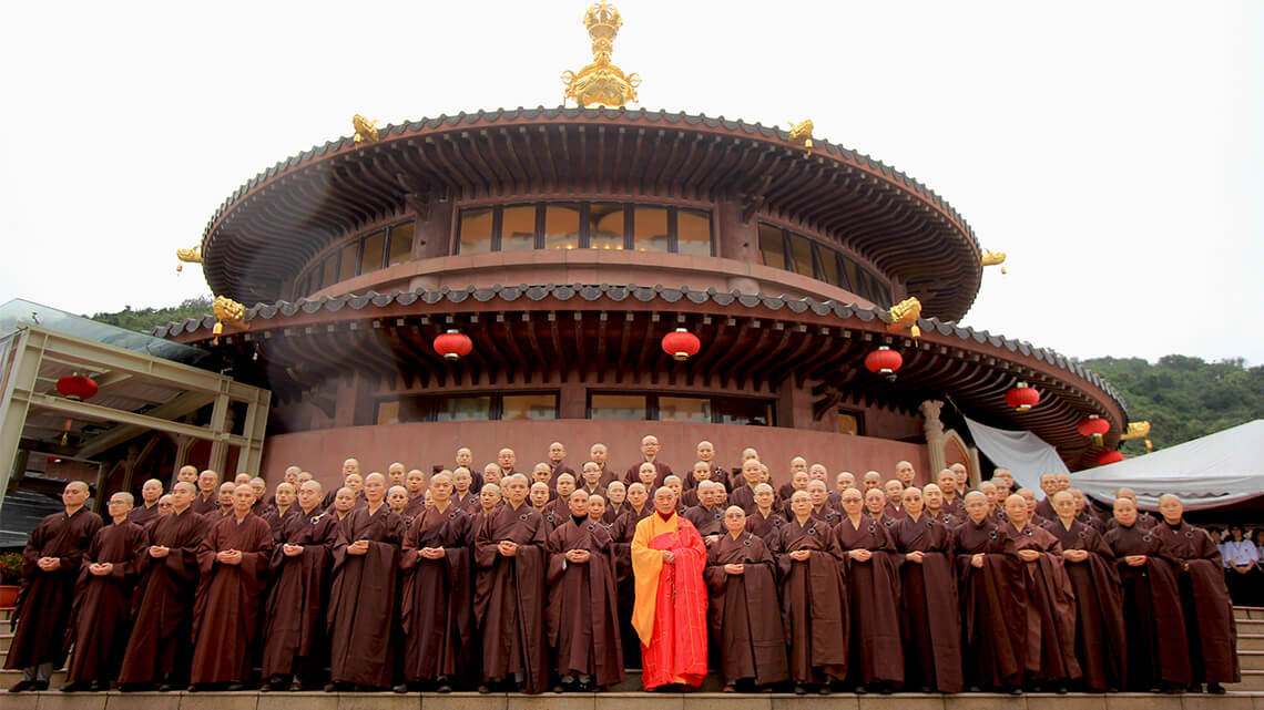 Dharma Master Hsin Tao then founded the Ling Jiou Mountain (LJM) WuSheng Monastery in northeastern Taiwan in 1983 to formally launch a platform to promote Buddha's teachings and interact with the crowd of laymen. His journey from a lone-practicing monastic to embarking on the Bodhisattva's path is based on the conviction that Theravada, Mahayana, and Vajrayana are all Dharma teachings of Buddha and the LJM upholds compassion and Chan/Zen as its principal ideals. Venerable Master Hsin Tao enjoys a unique and highly esteemed but rarely achieved state of convergence of Triyana: from Elder Master Ben Huan he received the lineage of the LinJi School of Chan Buddhism for Mahayana, from the National Buddhist Advisor he received the Mahesh Meditation methods of the lineage of Theravada, and from His Eminent Sichen Bairo Rinpoche he received the Rinchen Terdzö empowerments and the oral transmission of Buddha's Teaching (the Long Chen Nying Thing and the Longsal Nyingpo) in its entirety from the Nyingma School. Dharma Master Hsin Tao's unique and highly respected status in Triyana thus laid down for LJM a firm foundation and brought to it a highly venerated tradition and inheritance.